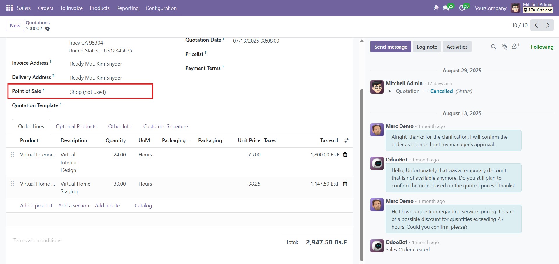 Required Modules: Point of Sale (point_of_sale), Sales / Quotation (sale)