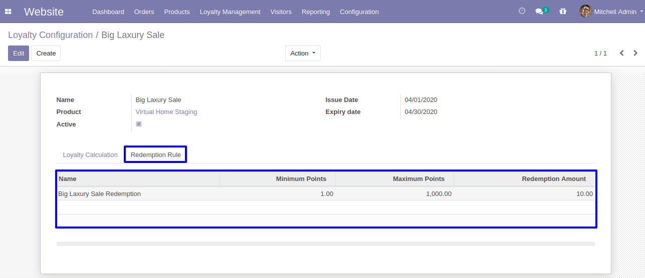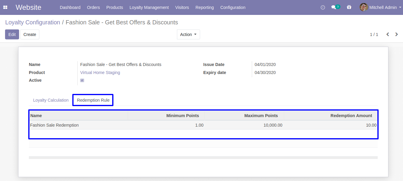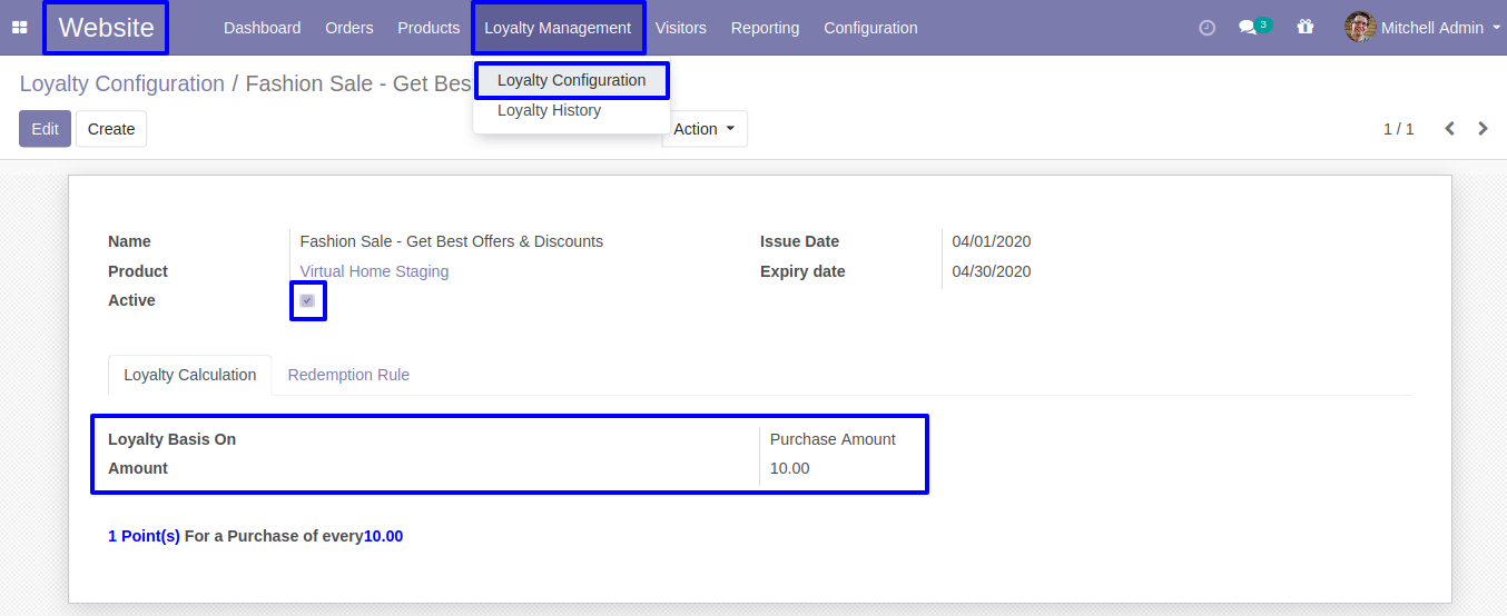 Customer can use loyalty points as a discount for other purchase order in website.Website Loyalty Configuration Based on Purchase Amount