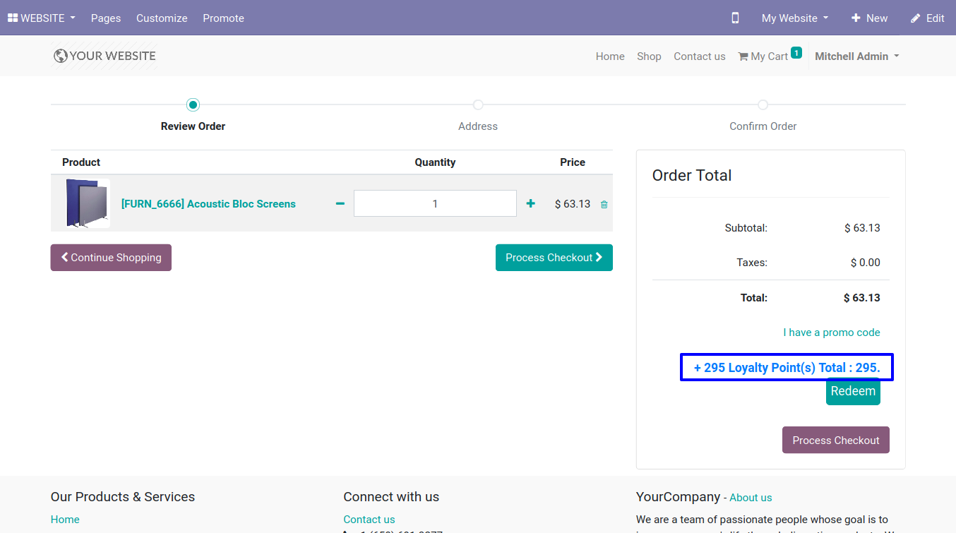 Website Loyalty and Rewards Redeem odoo apps is used to give website loyalty redemption points for every purchase to your customers from webshop /ecommerce. Customer can also redeem this loyalty points for other purchase from the Website/webshop sale. Every single Sales from the E-commerce -webshop records the Loyalty Rewards based on configuration setup on point of sale backend and those rewards will be redeemed on website order from website touch screen order easily. Reward redeems visible on applied website online sales order so it will be helpful for see history of the reward point redemption.