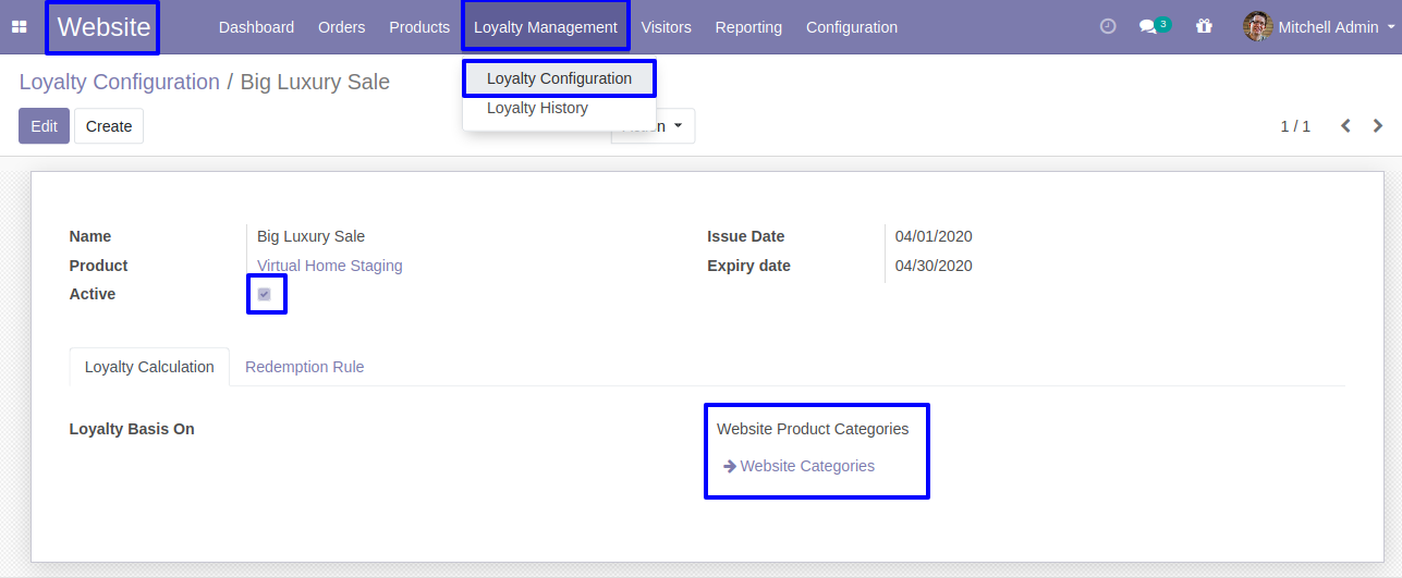 Website Loyalty Rewards and Redeem Management Odoo Apps