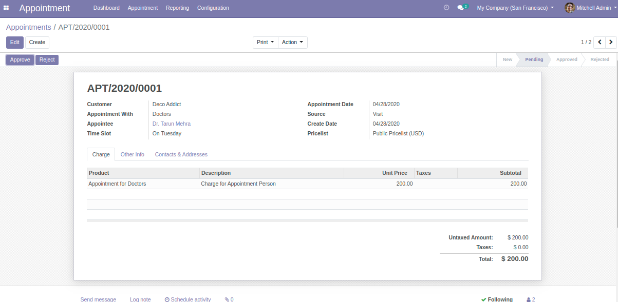 - Approve/ reject the appointments directly from the appointment form.