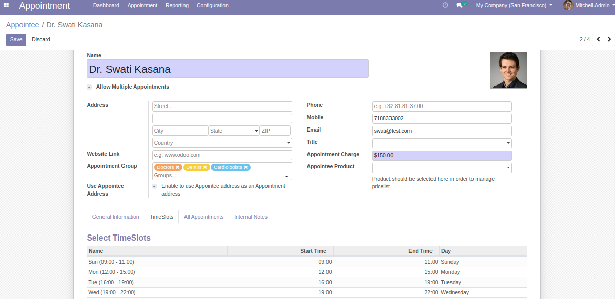 - Creating an Appointee in Odoo