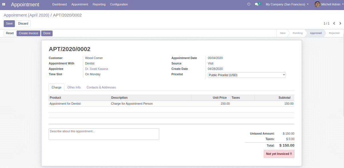 Manage the Charges for the Appointments